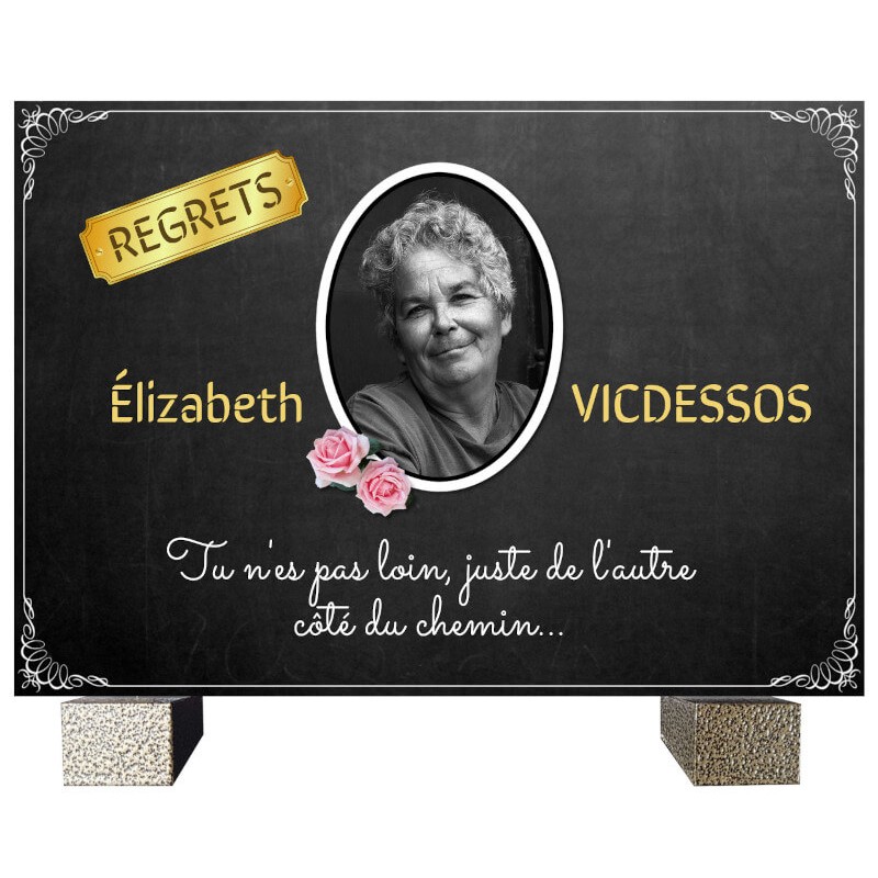 Grâce à notre personnalisation illimitée et offerte vous pouvez donner à votre plaque funéraire une allure très luxueuse et unique : Votre plaque pour tombe peut avoir un aspect marbre, granit, pierre naturelle, verre, ardoise, bois… Avoir du texte et des décorations de style dorure.