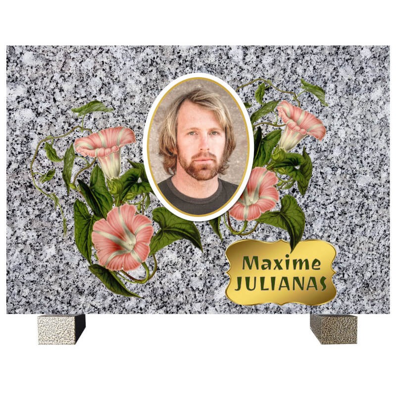 Grâce à notre personnalisation illimitée et offerte vous pouvez donner à votre plaque funéraire une allure très luxueuse et unique : Votre plaque pour tombe peut avoir un aspect marbre, granit, pierre naturelle, verre, ardoise, bois… Avoir du texte et des décorations de style dorure.