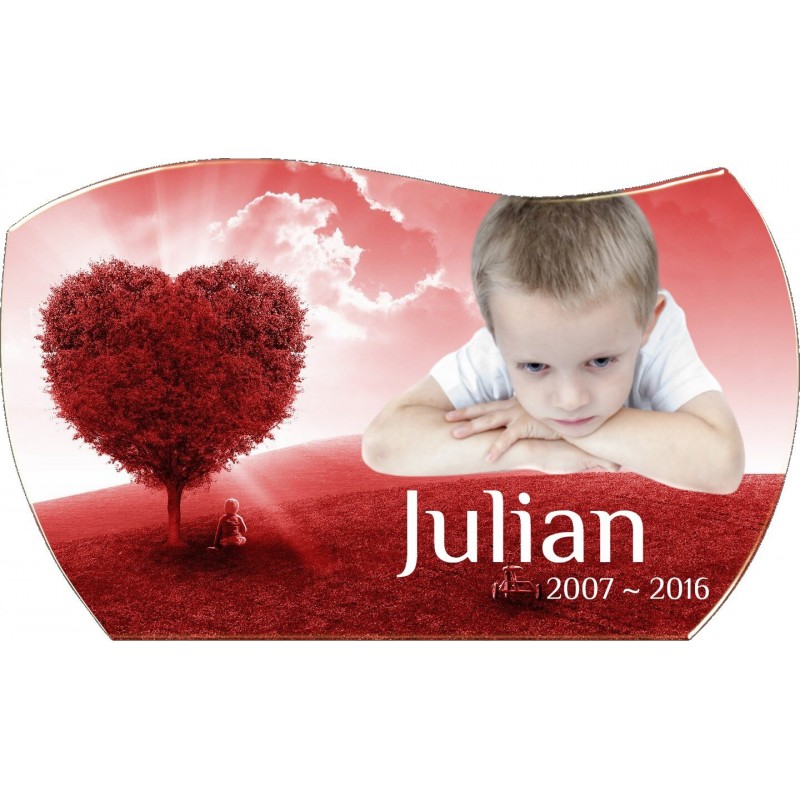 Foto em forma de livreto personalizável para túmulos, feita de resina flexível de alta qualidade resistente aos raios UV e às intempéries.